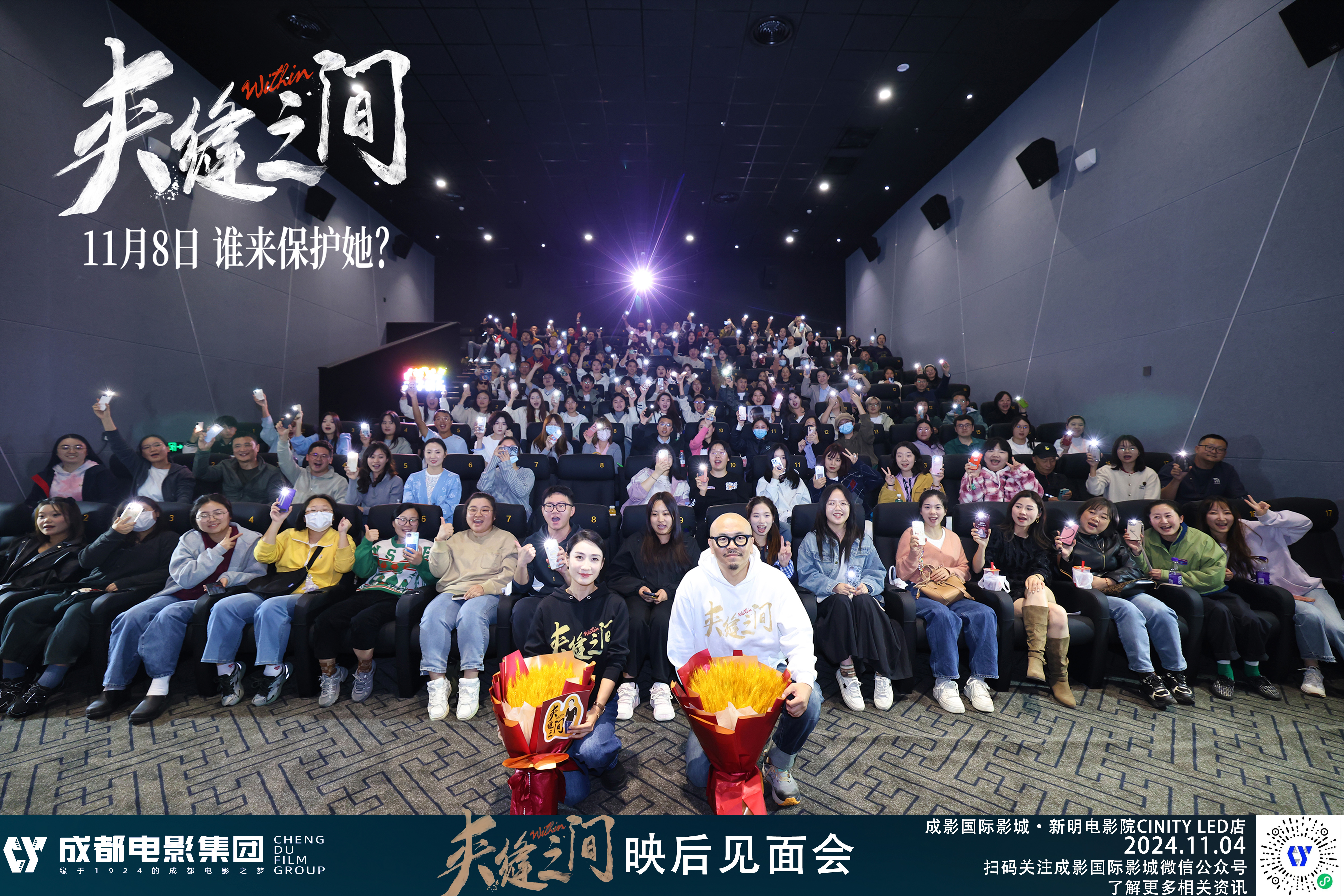 2024年11月4日晚,《夾縫之間》劇組主創(chuàng)導(dǎo)演/編?。汗舐?、監(jiān)制/制片人、主演:陶昕然一行到成影新明電影院進(jìn)行了映后路演活動...